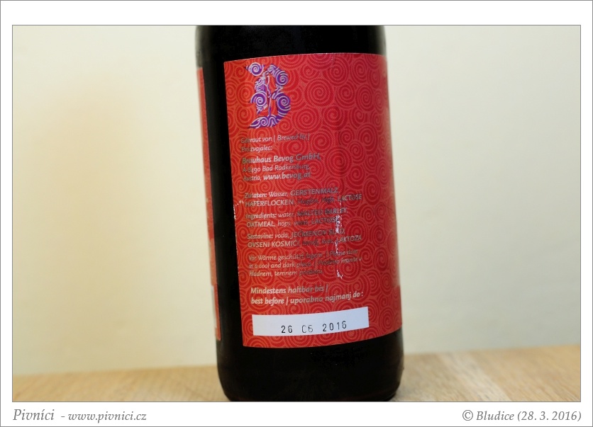 Chutný milk stout, výborně se popíjí.Minimální trvanlivost: 26. června 2016