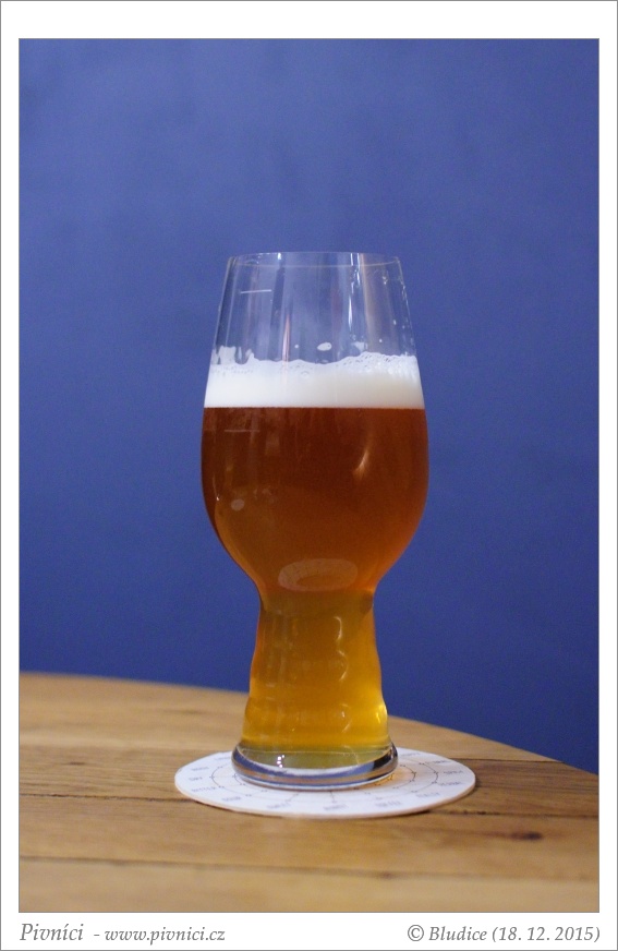Zlatá, velmi lehce zakalené, pěkná bílá pěna, obře drží.Vůně (4,5 - úchvatné):