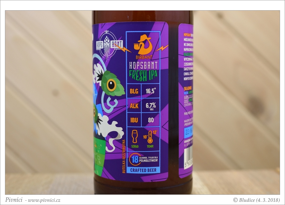 Chutné a výrazně chmelené pivo, velmi dobře se popíjí.Minimální trvanlivost: 22. června 2018