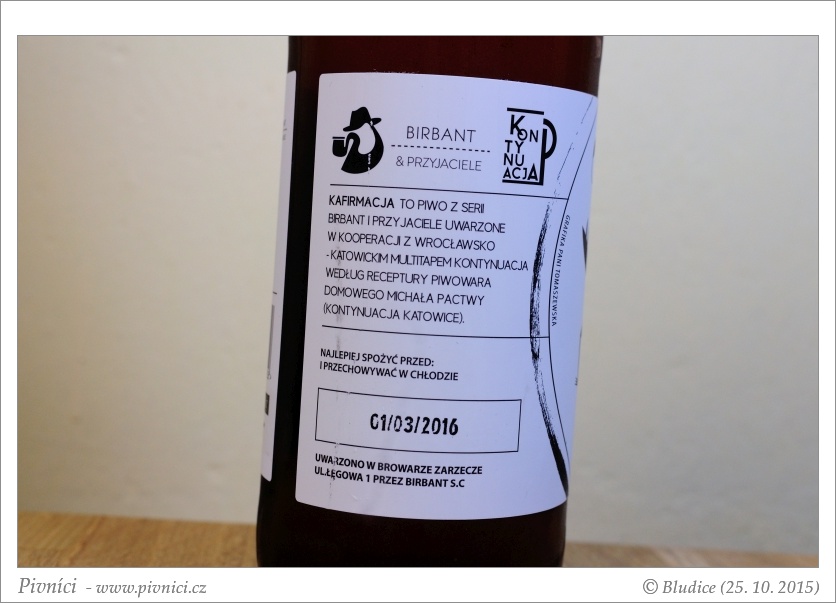 Barva tmavě měděná, téměř čiré. Nižší spíše méně stabilní pěna.Vůně (3 - dobré):