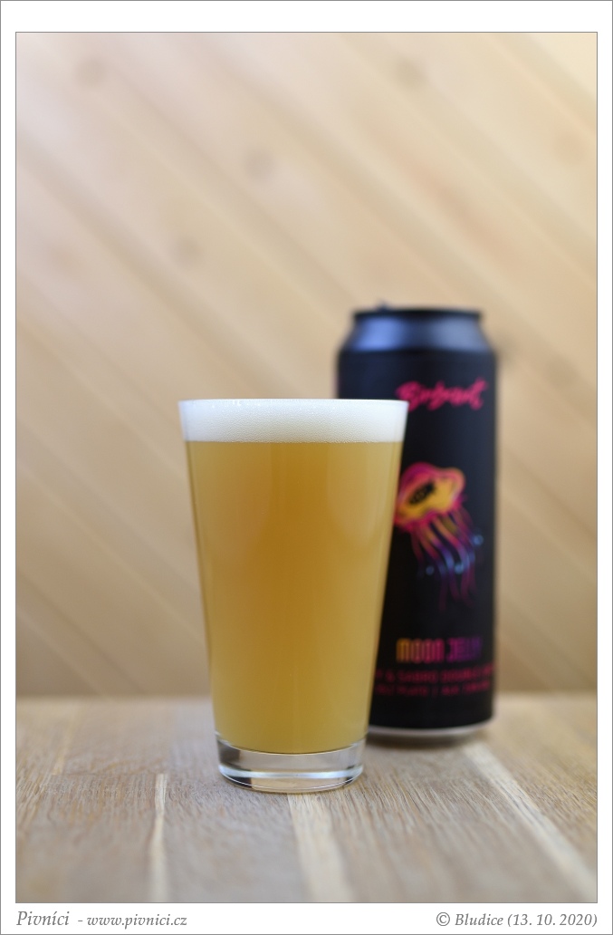 Světle zlatá barva, velmi zakalené. Slušná světlá pěna, celkem dobře drží.Vůně (4 - výborné):