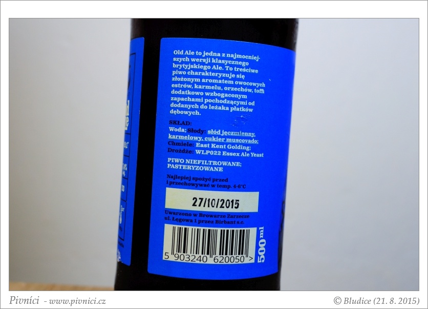 Chutné pivo, dubové hobliny jsou z něho hodně znát… na mě už skoro trochu moc. Neškodilo by jej trochu uhladit. I tak se ale popíjí velmi dobře, je to taková fajn líbivka.Minimální trvanlivost: 27. října 2015