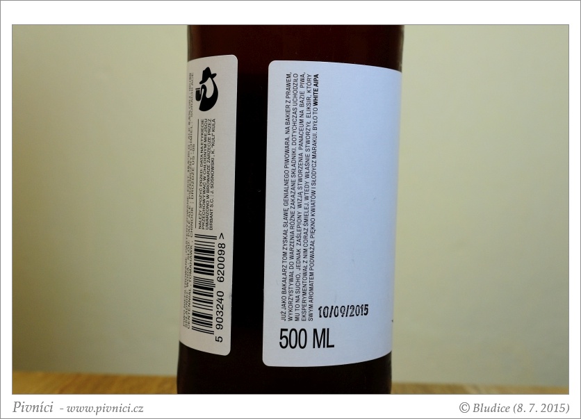 Tmavě zlatá barva, velmi lehce zakalené (zřejmě z pšeničného sladu, v ledničce odpočívalo několik týdnů).Vůně (3,5 - velmi dobré):