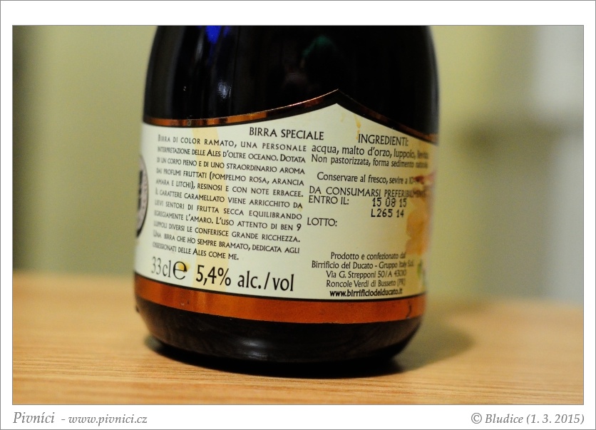Barva měděná, čiré. Pěkná hustá stabilní pěna.Vůně (3,5 - velmi dobré):