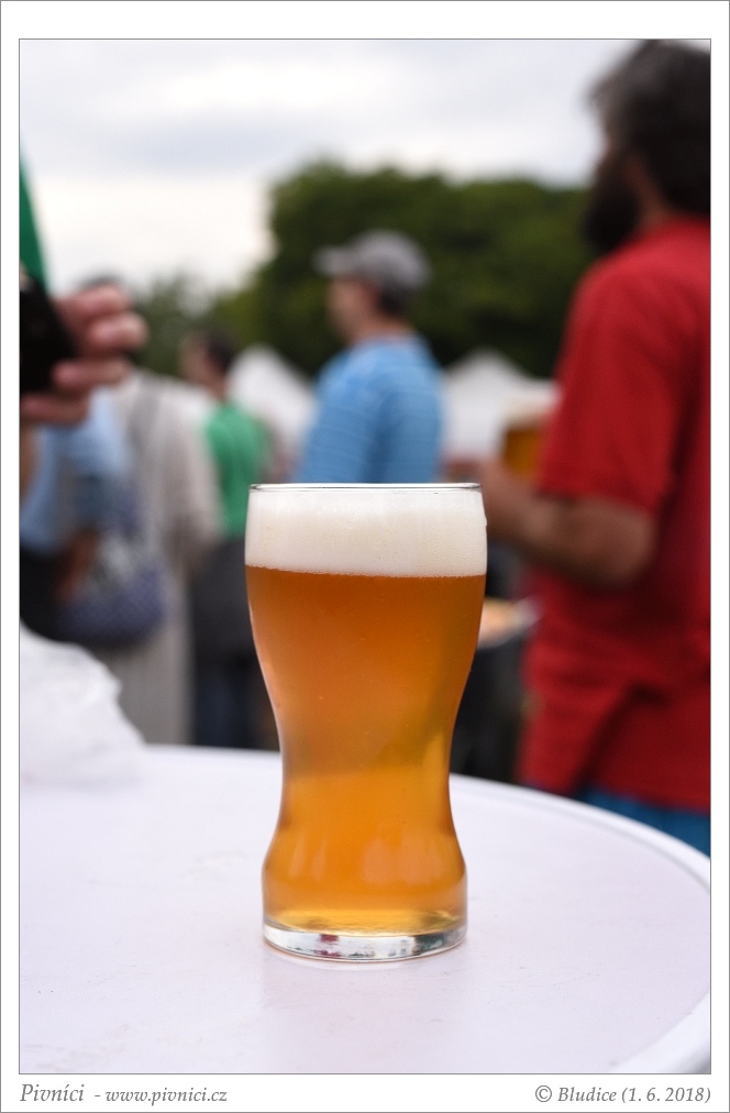 Zlatá barva, lehce zakalené. Pěkná světlá pěna, dobře drží.Vůně (3,5 - velmi dobré):