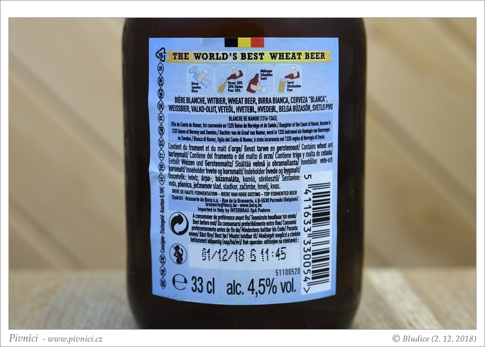 Příjemný a velmi dobře pitelný witbier.Minimální trvanlivost: 1. prosince 2018