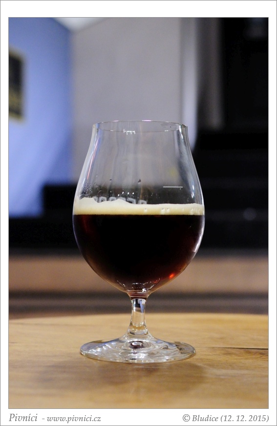 Mahagonová barva, čiré, pěkná světlá pěna s okrovým nádechem, dobře drží.Vůně (4,5 - úchvatné):