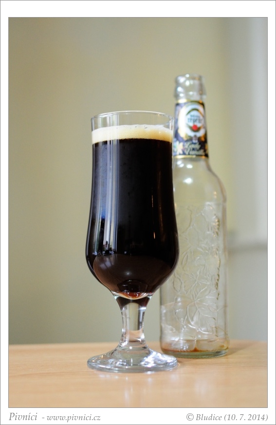 Tmavě mahagonová barva, čiré, slušná světlá pěna, celkem drží.Vůně (1,5 - nedobré):