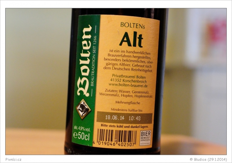 Celkem dobře pitelný Altbier s příjemným dozníváním.Minimální trvanlivost: 18.6.2014