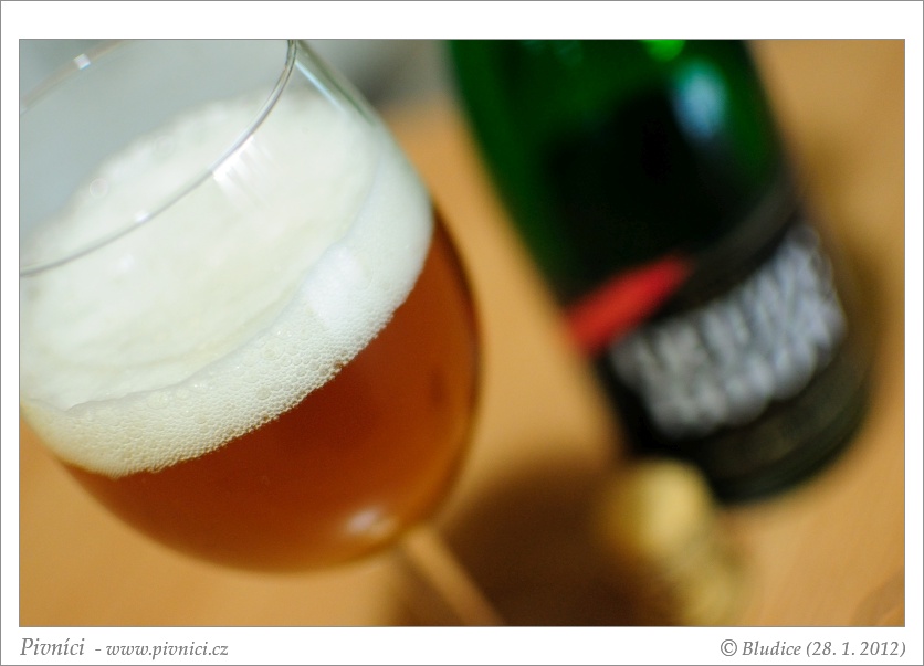 Barva oranžovo-hnědá, silně zakalené, velmi pěkná hustá stabilní bílá pěna.Vůně (3,5 - velmi dobré):