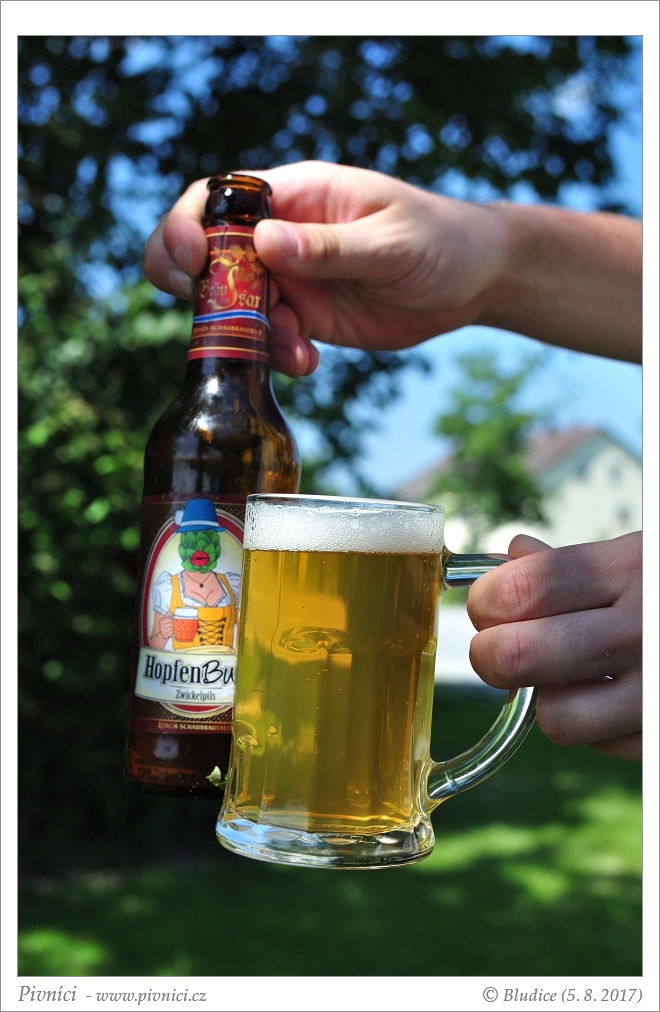 Zlatá barva, velmi lehce zakalené. Pěkná světlá pěna, dobře drží.Vůně (3 - dobré):