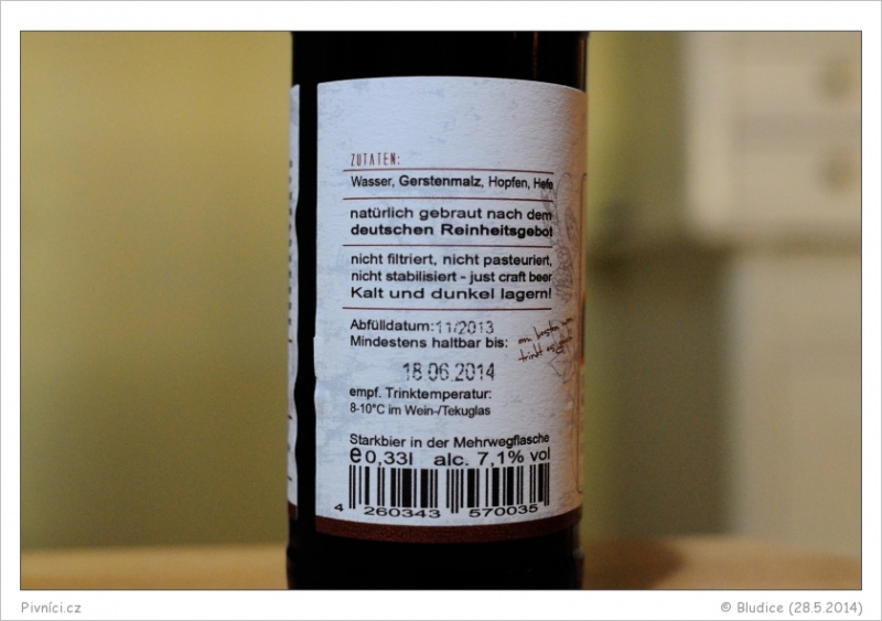 Sladší IPA s příjemnými ovocnými chmelovými tóny.Lahvováno: 11/2013