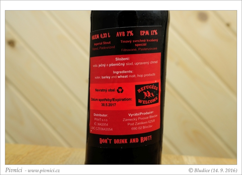 Drsnější pivo, špatně pitelné.Minimální trvanlivost: 30. května 2017