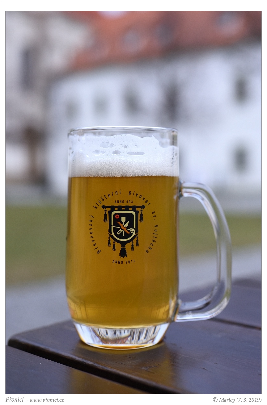 Světle zlatá barva, lehce zakalené. Pěkná světlá pěna, dobře drží, pěkně kroužkuje.Vůně (2 - průměr):