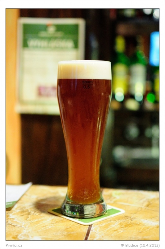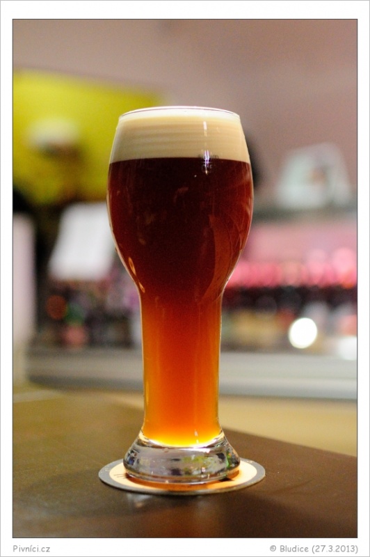 Mahagonová barva, velmi zakalené, hezká krémová světlá pěna.Vůně (3,5 - velmi dobré):