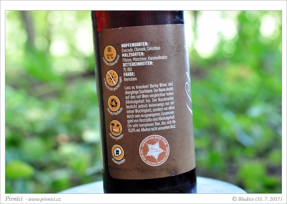 Chutné chmelenější Barley Wine, klasické kapky proti kašli. Není to můj oblíbený pivní styl, ale toto pivo je čisté a dobře uvařené. Pije se velmi dobře.Minimální trvanlivost: 24. června 2019