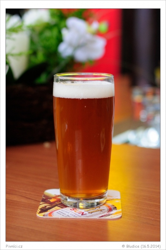 Tmavě zlatá barva, lehce zakalené, průměrná bílá pěna, brzy padá.Vůně (3,5 - velmi dobré):