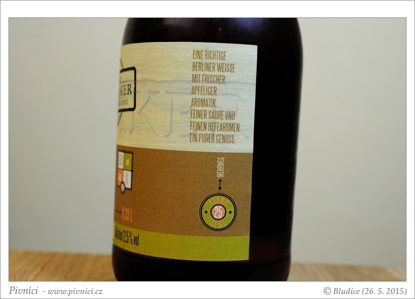 Zajímavý, charakterní, svěží a dobře pitelný berliner weisse.Sledujte Pivníky