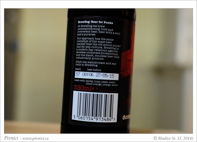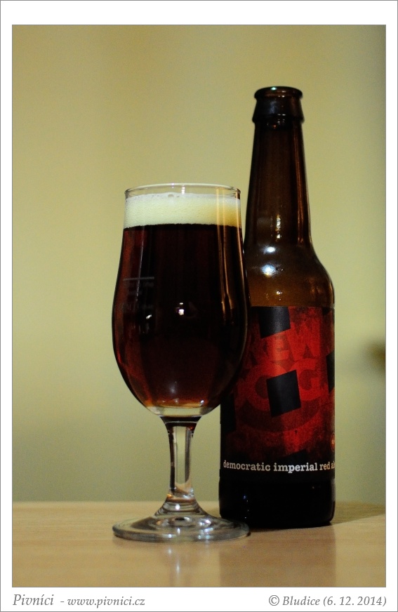 Mahagonová barva, čiré, slušná světlá pěna s okrovým nádechem, celkem drží.Vůně (4 - výborné):