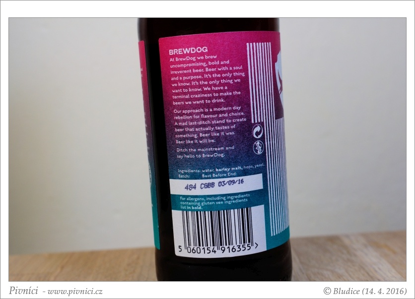 Čisté, pěkně vyvážené, velmi dobře pitelné pivo.Minimální trvanlivost: 3. září 2016