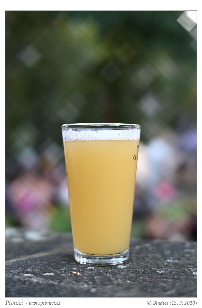 Barva světle žlutá, silně zakalené. Pěkná hustá stabilní pěna.Vůně (3 - dobré):
