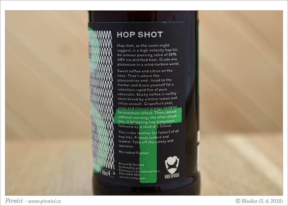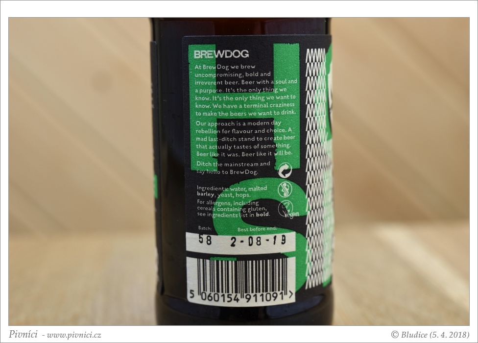 Výrazně chmelené a alkoholové pivo, zajímavé, dobře se popíjí.Minimální trvanlivost: 2. srpna 2019