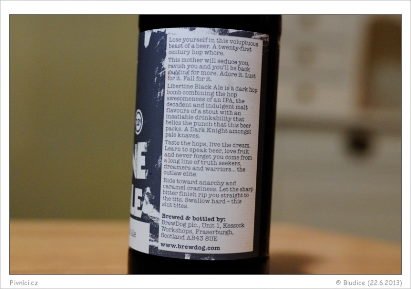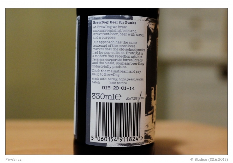 Drsnější výrazněji pražená Black IPA. Pije se dobře.Minimální trvanlivost: 28.1.2014