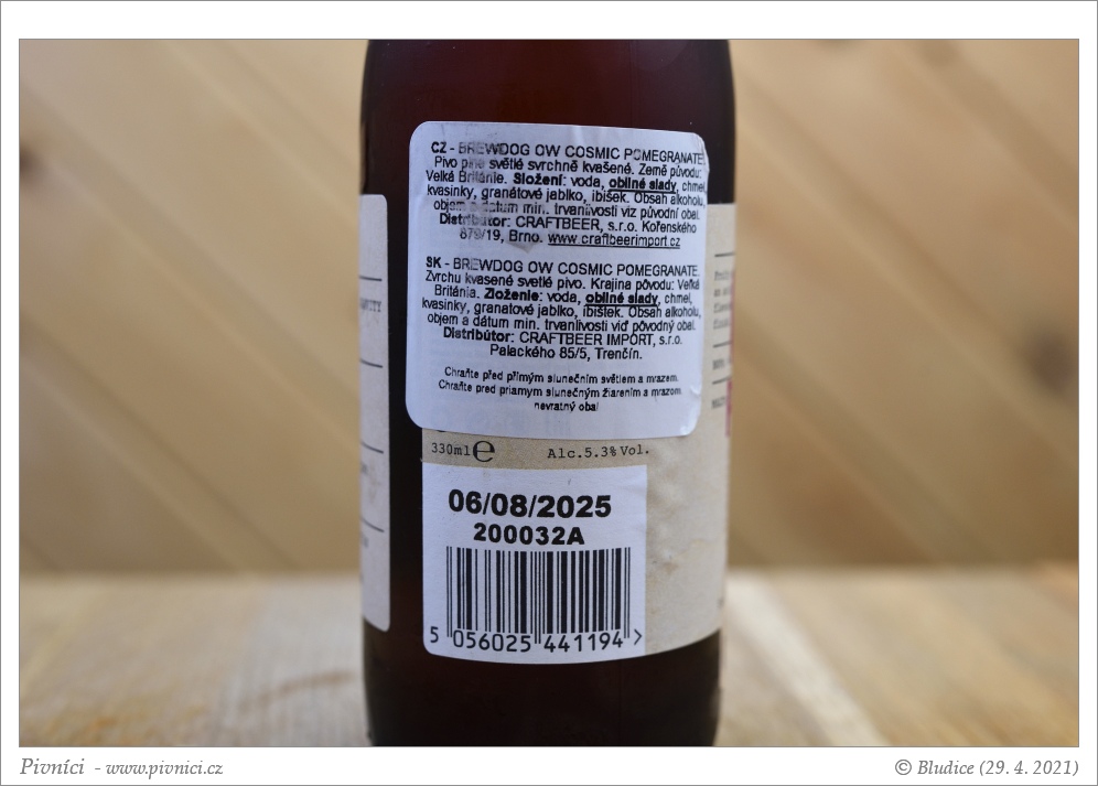 Chutný a zajímavý kyseláč, výborně se popíjí.Minimální trvanlivost: 6. srpna 2025