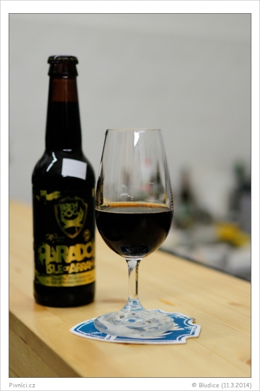 Ebenová barva, čiré, nižší světle béžová pěna, průměrně drží.Vůně (4,5 - úchvatné):