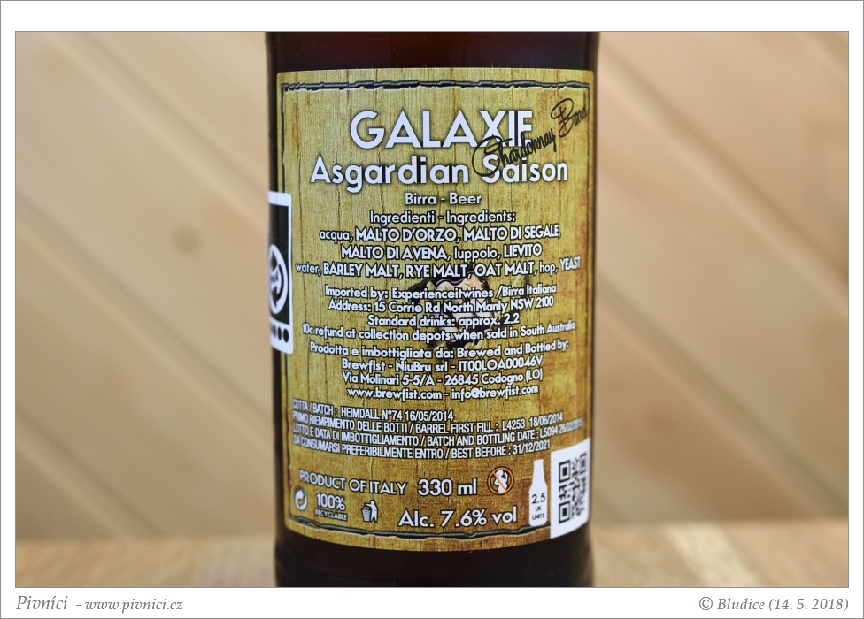 Zlatá barva, téměř čiré. Pěkná světlá pěna, dobře drží.Vůně (4,5 - úchvatné):