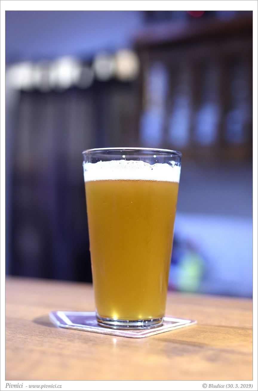 Zlatá barva, více zakalené, pěkná světlá pěna, dobře drží.Vůně (2,5 - lehce nadprůměr):