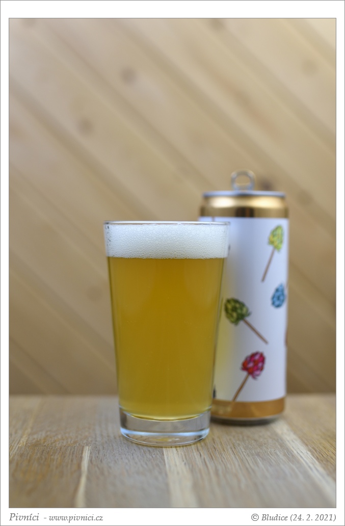 Světle zlatá barva, lehce zakalené. Slušná světlá pěna, celkem drží.Vůně (3 - dobré):