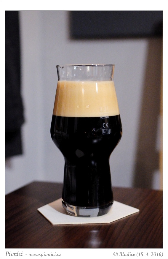 Ebenová barva, zdá se čiré, krémová světle béžová pěna, dobře drží. Na počátku pěkný lavinový efekt.Vůně (4 - výborné):