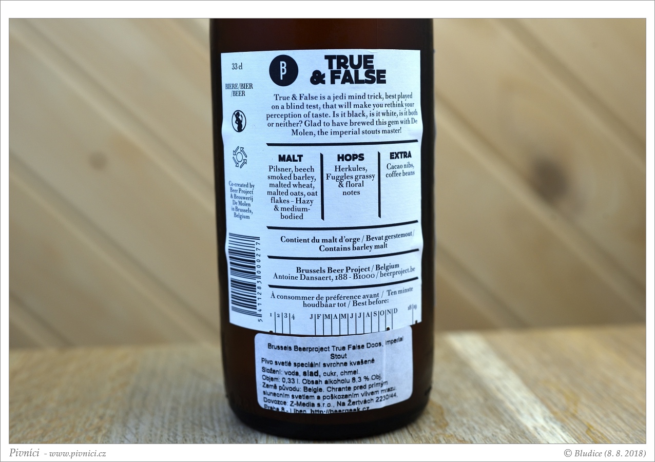 Světle zlatá barva, čiré. Pěkná světlá pěna, dobře drží.Vůně (3,5 - velmi dobré):