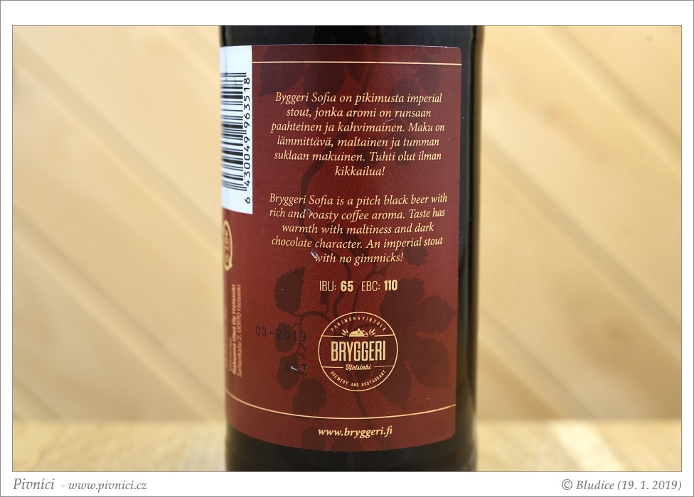 Celkem pitelný imperial stout s trochu rušivým nakyslým nádechem.Minimální trvanlivost: 31. března 2019