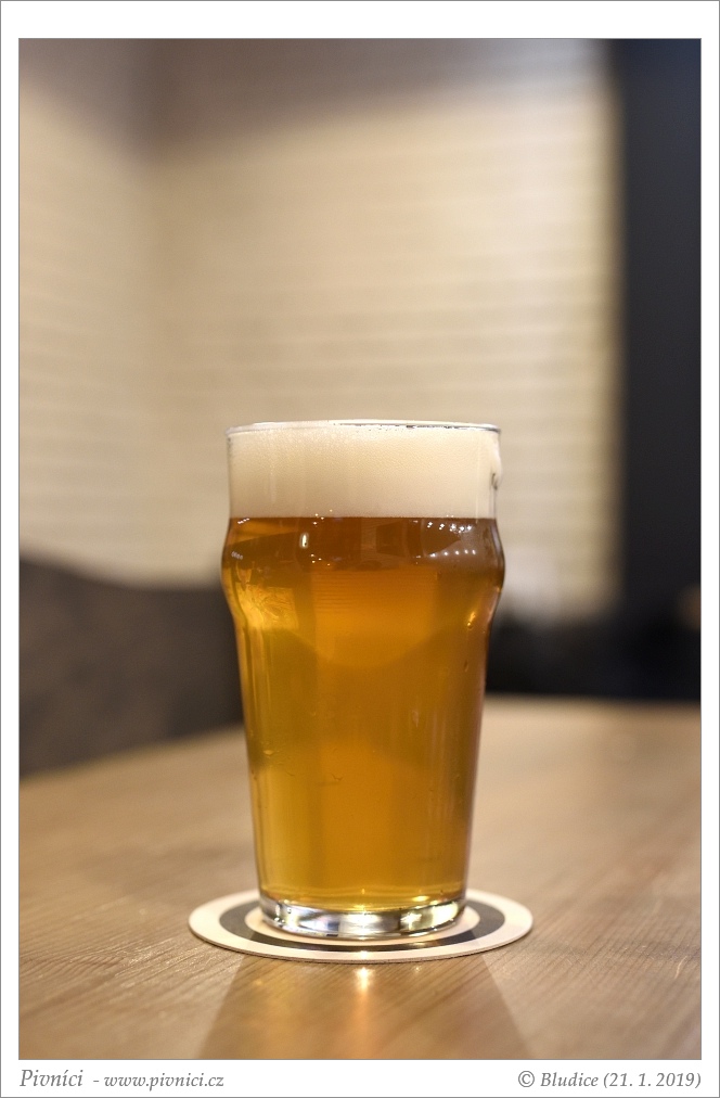 Zlatá barva, velmi lehce zakalené. Pěkná světlá pěna, dobře drží, hezky kroužkuje.Vůně (2 - průměr):