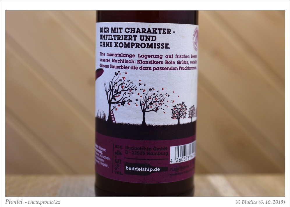 Vyšší jemný říz s lehkou šumivostí, nižší plnost. V chuti nakyslé, s tóny červeného rybízu, malin, třešní, lehkým obilným a jemně kefírovým nádechem. Doznívání je s tóny třešní, malin, lehce borůvek, s velmi lehkým obilným nádechem.Celkový dojem (7 - velmi dobré):