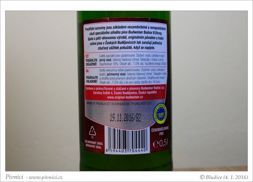 Chutný silný ležák, dobře se popíjí.Minimální trvanlivost: 23. února 2016