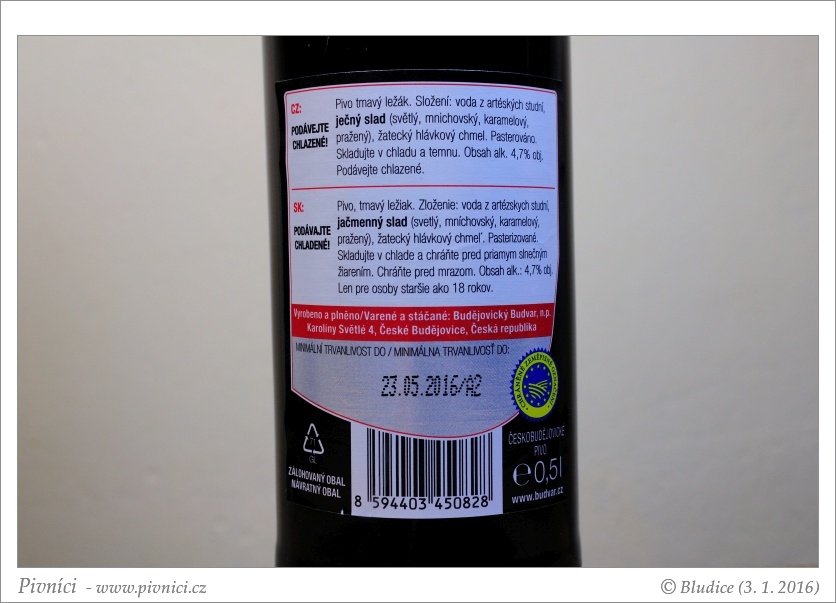 Výborně pitelný tmavý ležák.Minimální trvanlivost: 29. května 2024