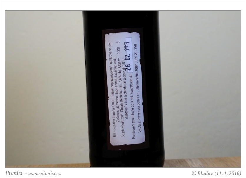 Trochu nakyslejší, praženější silný stout. Ve vůni nic moc, ale pije se celkem dobře.Minimální trvanlivost: 26. února 2016