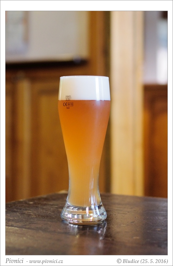 Světlá oranžová až růžová barva, více zakalené, slušná světlá pěna, celkem drží.Vůně (1,5 - nedobré):