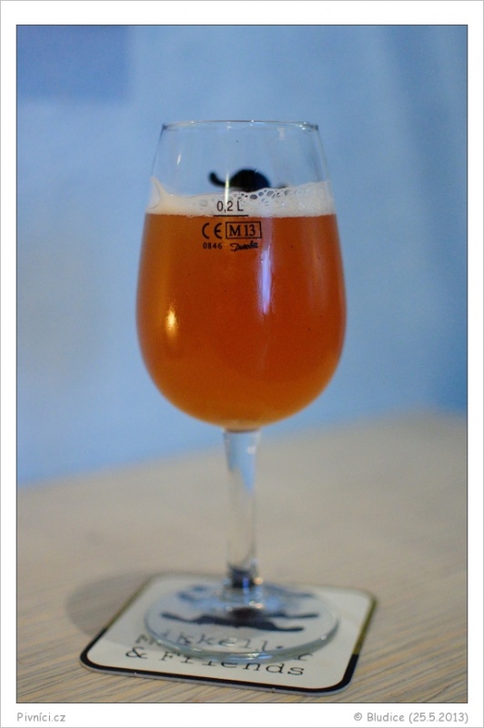 Jantarová až oranžová barva, středně až více zakalené, nízká brzy padající pěna, světlá s okrovým nádechem.Vůně (4,5 - úchvatné):
