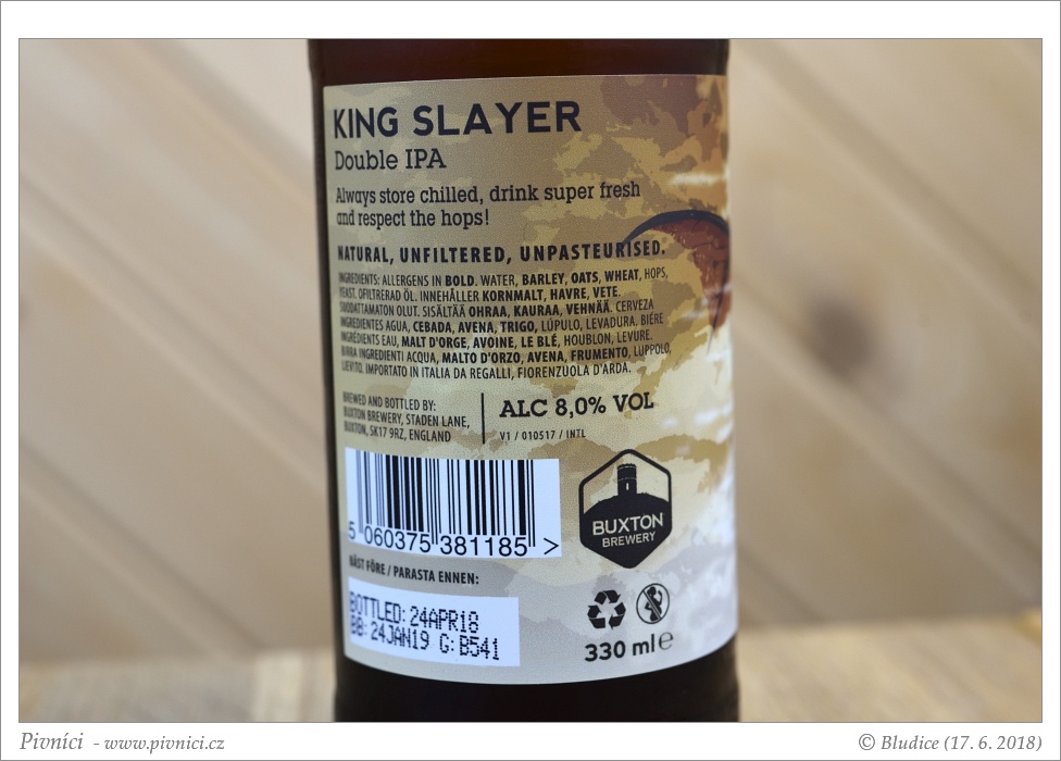 Zlatá barva, středně zakalené (odpočívalo deset dní v klidu lednice – zákal je dle všeho záměr). Pěkná světlá pěna, dobře drží.Vůně (4,5 - úchvatné):