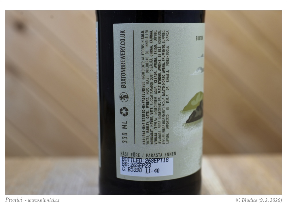 Barva téměř černá. Nižší průměrně stabilní pěna béžové barvy.Vůně (3,5 - velmi dobré):