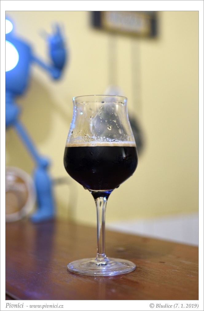 Naprosto černá neprůsvitná barva, náznak tmavě hnědé pěny.Vůně (4,5 - úchvatné):