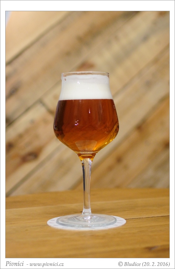 Zlatá barva, téměř čiré, pěkná světlá pěna, dobře drží.Vůně (3,5 - velmi dobré):
