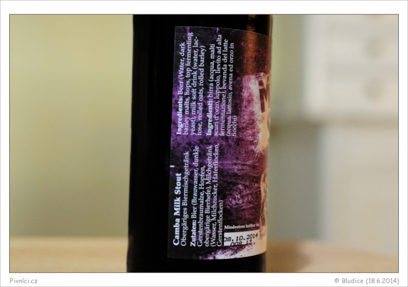 Chutný a velmi dobře pitelný Stout. Mohl by být trochu plnější.Minimální trvanlivost: 8. října 2014