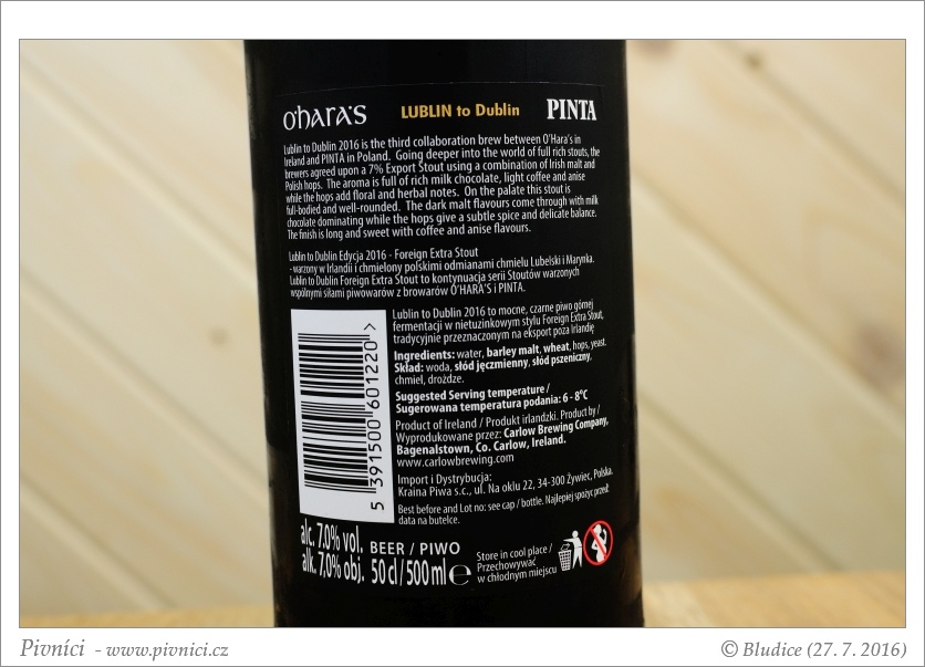 Vydařený silný stout. Výborně se popíjí.Minimální trvanlivost: 28. listopadu 2017