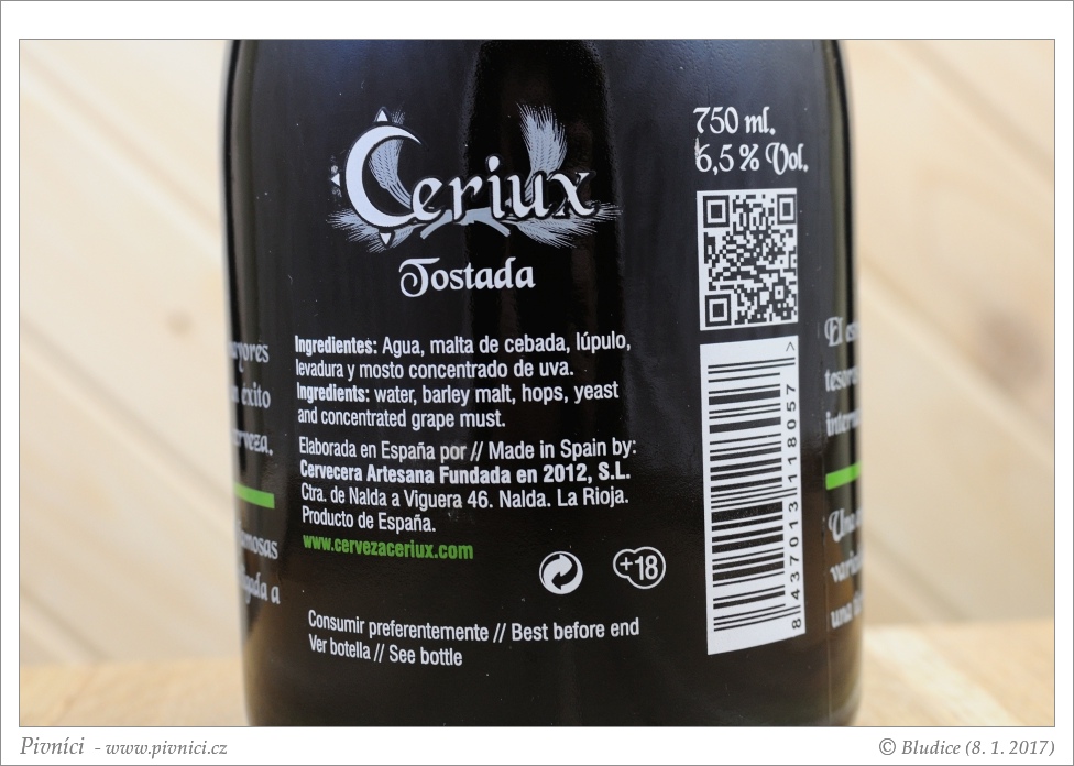 Celkem fajn sladovější pivo, víno z něho je cítit pouze nepatrně. Dobře se pije.Minimální trvanlivost: 26. ledna 2018