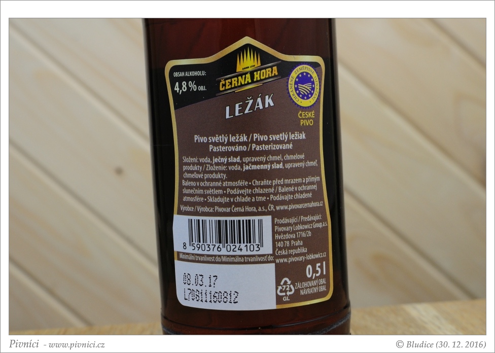 Průměrně pitelné pivo.Minimální trvanlivost: 8. března 2017